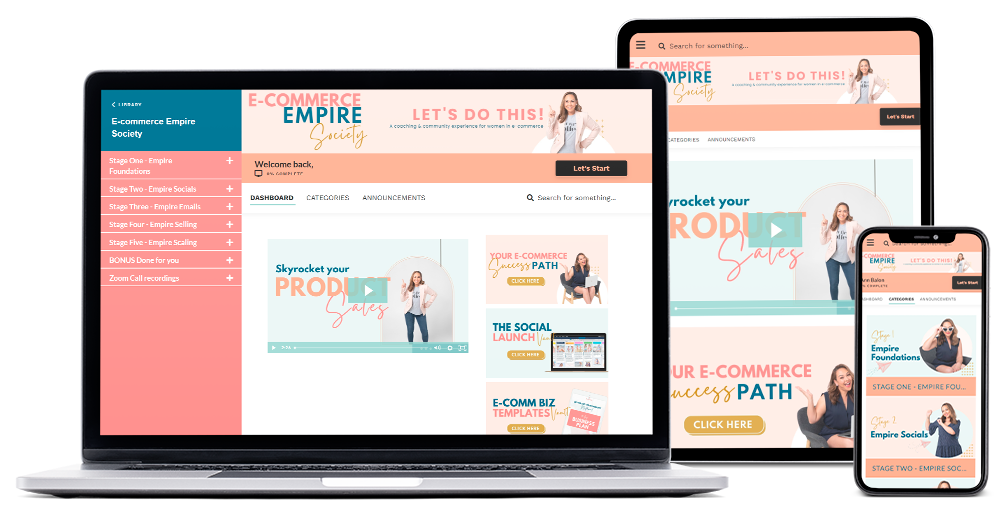 The E-commerce Empire Society is a forever evolving program because I want to bring you everything you need as you need it SO new content will be added each month for you to consume.